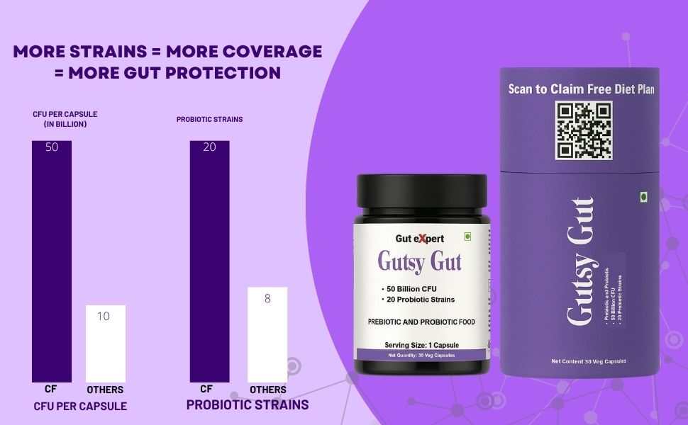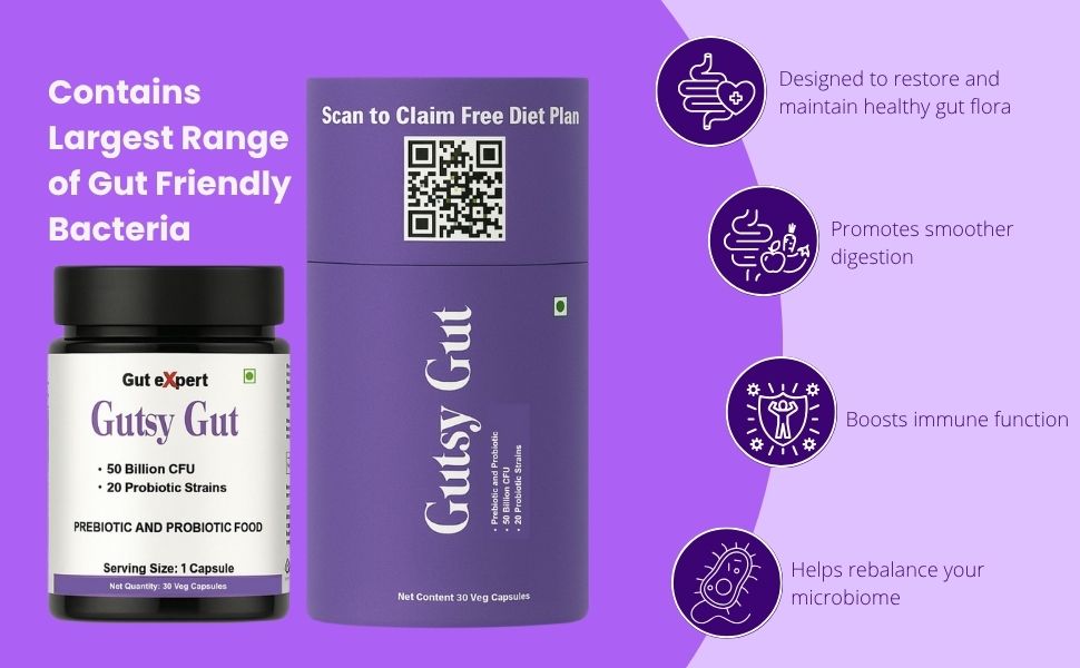 GUT EXPERT - Gutsy Gut PRE+PROBIOTIC--- is a probiotic and Prebiotic combination with 20 Billion IU . The combination of 19 strains of Bacteria makes it one of the most effective Pre-Probiotic combination available . You GUT needs a Prebiotic and Probiotic combination and not just any one because probiotics are live beneficial organisms, and prebiotics are the food that they need to survive .