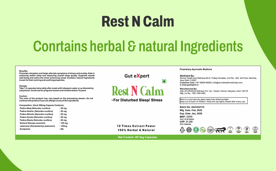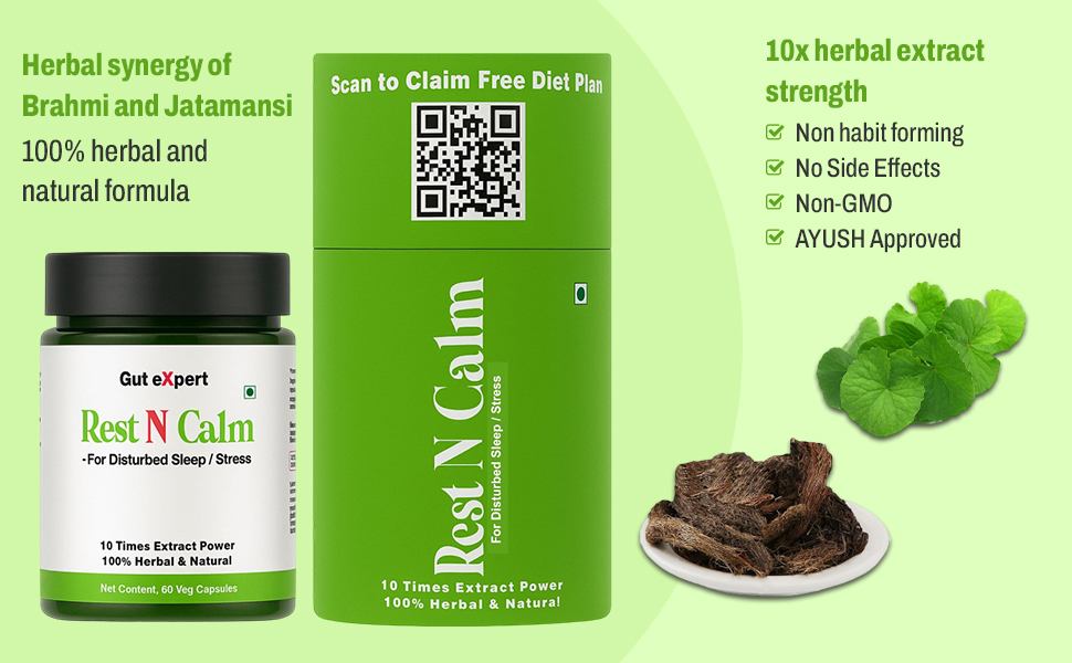 Rest n Calm contains 100 Natural Ayurveda compounds that help to calm the nervous system , reduce anxiety and treat loss of sleep. It serves as a soothing ritual, after a long day. The gentle, calming effect of SLEEP GOOD can help to lower cortisol levels, the hormone associated with stress, and enhance overall well-being.The capusles uses extracts of herbs in ratio of 10:1 making it 10 times more effective than the powder form .
